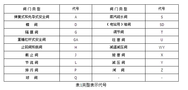 閥門類型代號用漢語拼音字母表示,按表1的規定表示。